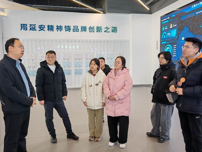 实践首站,团队来到秦创原(延安)创新促进中心。作为陕西省创新驱动平台的重要组成部分,秦创原(延安)致力于推动科技成果转化、科技企业孵化和创新资源集聚。在中心展厅,团队成员通过图文展板、实物模型和多媒体演示,系统了解了延安的历史沿革、资源禀赋以及当前“依托能源、多元发展”的产业布局,对“以创新促转型”的发展思路有了直观认知。