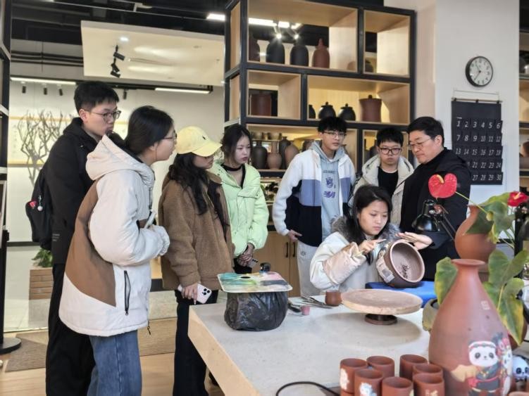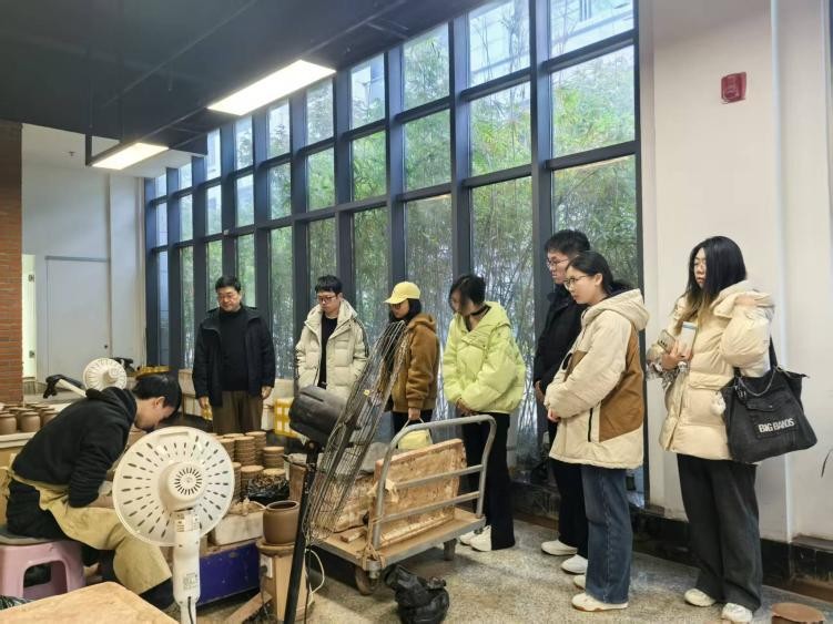 2026年2月8日下午,四川大学与西安交通大学联合社会实践团队走进四川省自贡市荣县一澄土陶创意园,开展“探秘非遗现代化转型与‘双碳’实践”主题研学活动。十余名学子通过实地观摩、亲手体验、与艺术家对话,深度观察一项千年非遗技艺——荣县土陶制作技艺——如何在现代科技与“双碳”理念的赋能下,实现从“工业品”到“艺术品”的转型之路。