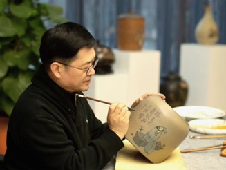 刘勇2019年受荣县政府邀请从北京扎根于此,至今已五年。他将国画功底与荣县陶土结合,从苏东坡、陆游的诗词文脉和国宝熊猫等文化元素中汲取灵感,创作出“东坡文人壶”、“千里江山壶”、“国宝熊猫壶”等系列作品,让古朴的土陶“会说话”,承载起深厚的文化内涵。